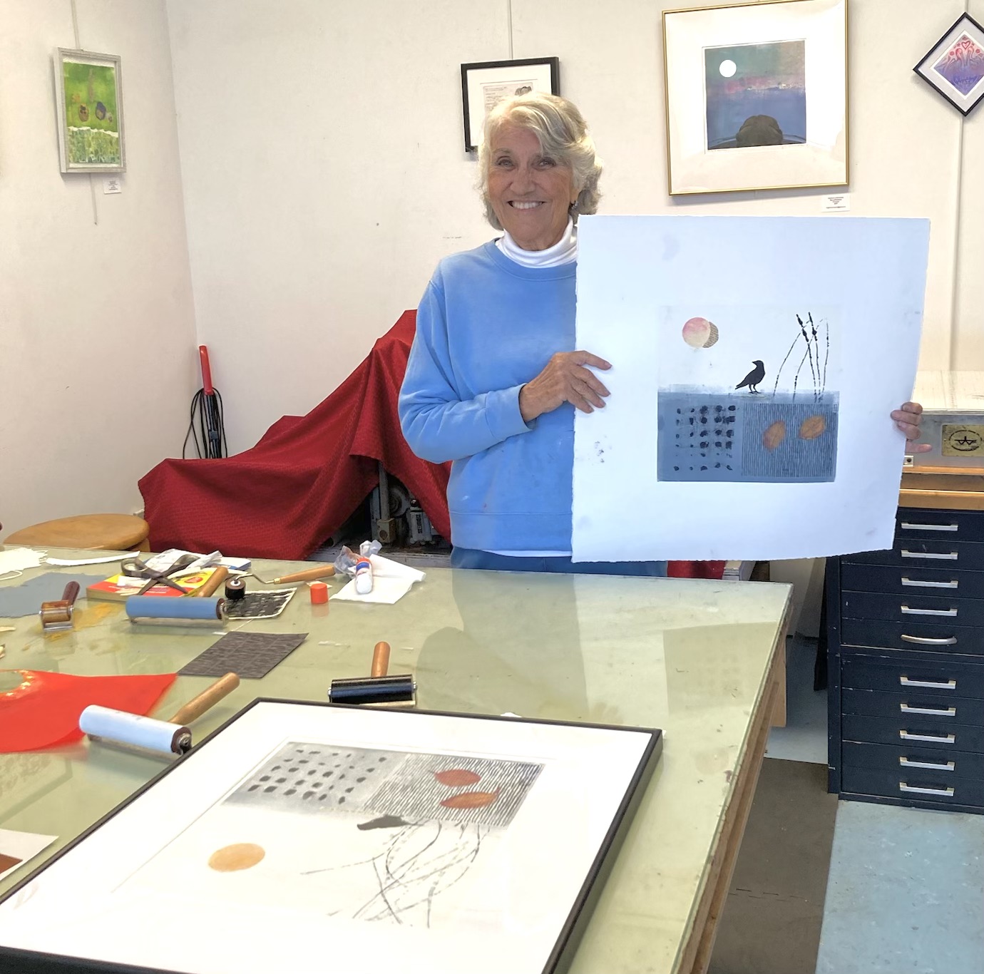 Virginia Furmanski demonstrated her unique vision for creating monotypes utilizing numerous layers that she printed onto the final image. There will be demos on each Saturday in November 1-4 pm.