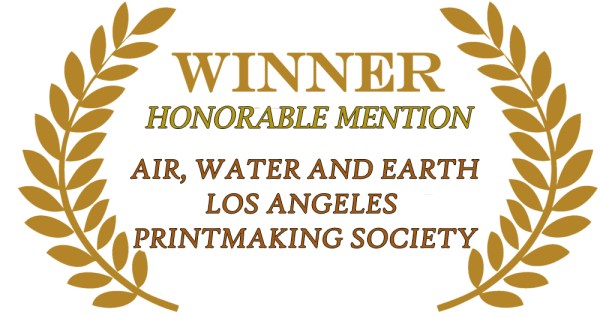 Inkspot member Monica Wiesblott was awarded the Honorable Mention prize at the Air, Water and Earth exhibition by juror Kim Abeles for her etchings "Ash from the evacuation zone #1 & #2 "